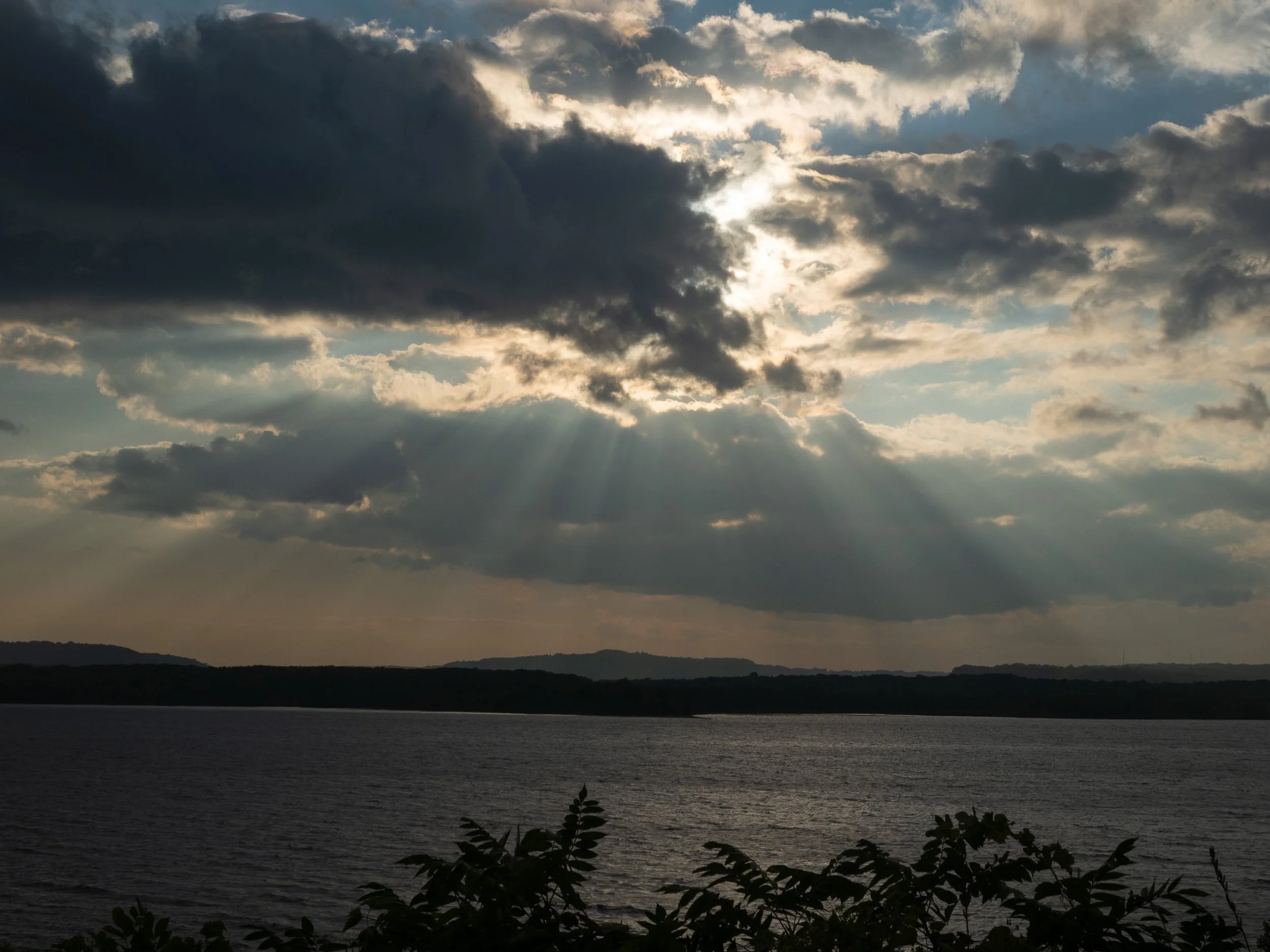 The subject is the sky with the sun shining through clouds on partly-cloudy day. This can result in dramatic shots. If the sun is only partially covered, the result may be a sunburst effect or crepuscular rays both of which are in this image.